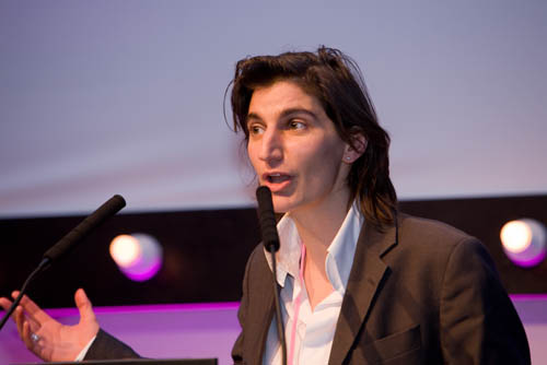 Auf der Bühnen saßen nicht nur die vier Panelisten, TV-Presentator Alvin Hall, Kiva-Mitgründer Premal Shah, Jim Berk CEO von Participant Media und Cara Mertes, Direktorin des Sundance Institutes, sondern ein leerer Stuhl, der von jedem Teilnehmer der Session besetzt werden konnte. Sobald ein Beitrag beendet war, kam aus dem Saal jemand nach vorne um sich in die Diskussion einzubringen, während einer der ursprünglichen Panelisten im Zuschauerraum Platz nahm. So wurde Alvin Hall abgelöst durch Bart Weetjens (über den Alvin einen Dokumentarfilm gemacht hatte), der wiederum von einem BBC Worldservice-Produzenten usw.. Auf diese Weise konnte der Spannungsbogen über eineinhalb Stunden gehalten werden und eine unvergleichliche Vielfalt von Perspektiven Gehör finden. Ganz zum Schluss holte Jess wieder die ursprünglichen Gäste auf die Bühne, die in einem Kurzstatement die wichtigsten Themen des Nachmittags zusammenfassten.